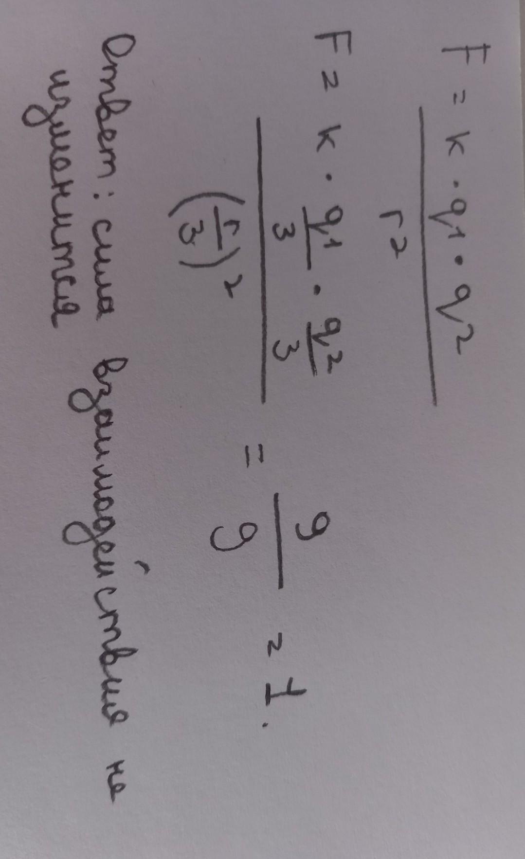 Как изменится сила взаимодействия между двумя точечными зарядами при уменьшении каждого из них в 3 раза ?