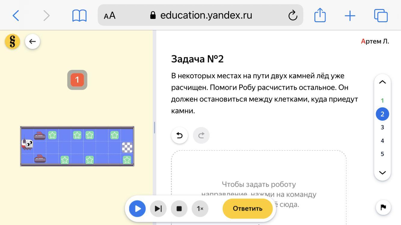 В некоторых местах на пути двух камней лёд уже расчищен. Помоги Робу расчистить остальное. Он должен остановиться между клетками, куда приедут камни.