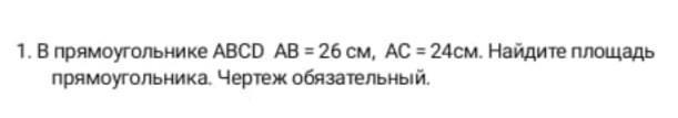 В данном прямоугольнике по условию сторона АВ = 26 см, диагональ АС = 24 см, тогда