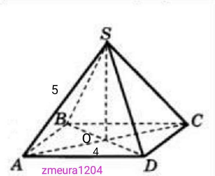 SO=√(SA²-AO²)=√(5²-(2√2)²)=√(25-8)=