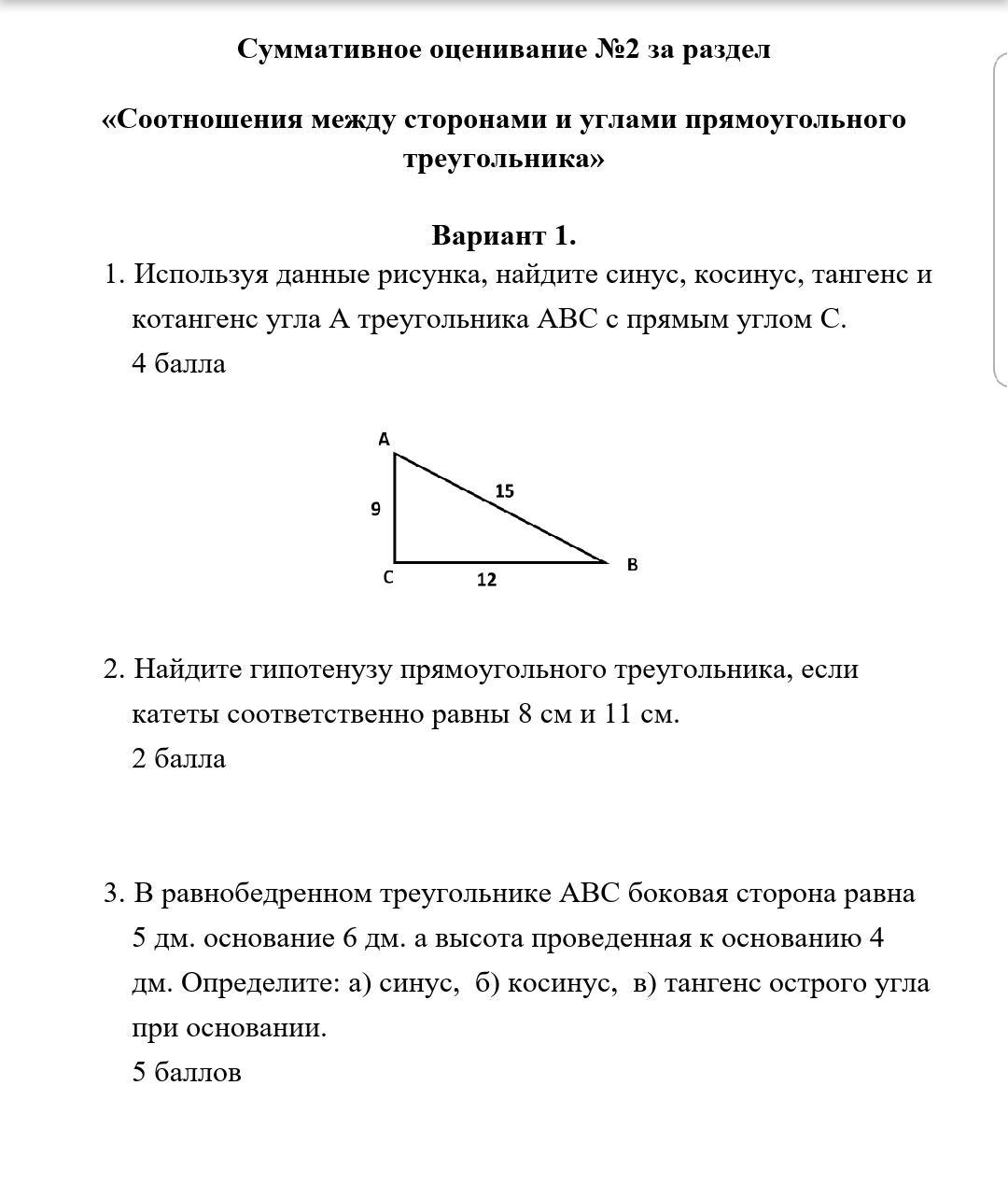 Синус угла А (sin) - отношение противолежащего катета к гипотенузе. Для А это 12/15 = 4/5 = 0.8.