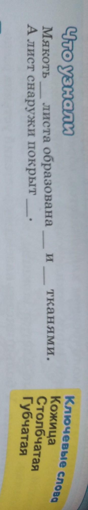 Мякоть ? листа образована покровной и проводящей тканями. А лист снаружи покрыт кожицей.