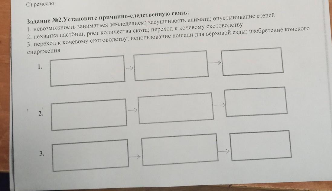 установите причинно-следветственную свзяь.1.невозможность заниматься земледелием;засушливость климата;опустывание степей