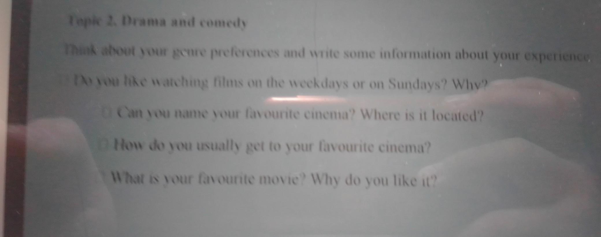 Teak Choose ONE of the specs below Follow the tips for writing Answer all the Spelli sopra cabulary accurately Use prepositions of time, location and Tags 1. Owront de Think about your home place home town or village) and write some information about it here do you write about its location Do you like this village? Why? What is your favorite place in this town / village? Where is it located? lur can you do your home town / village? Write about some winter or summer aces and spons Topic 2 Drama and comedy Think about your game preferences and write some information about your experience Do you like watching films on the weekdays or on Sundays? Why? Can you name your favourite cinema? Where is it located? How do you usually get to your favourite cinema? What is your favourite movie? Why do you like it? помогите я живу в Кызылорде пж