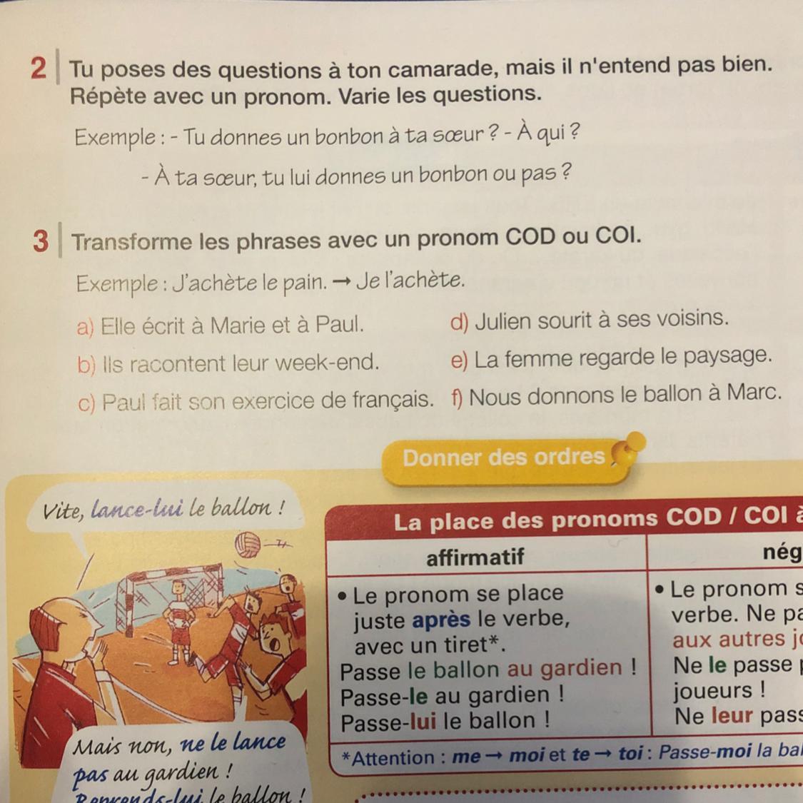 c) Paul fait son exercice de français. f) Nous donnons le ballon à Marc.