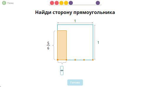 т.к. нижнюю сторону квадрата разбили на 4 равных части и взяли одну. сторона закрашенного прямоугольника одна 5/6, другая , искомая, 1/4