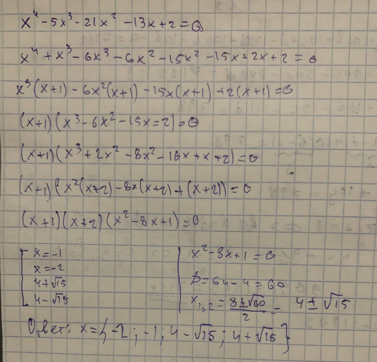 x^4-5x^3-21x^2-13x+2=0