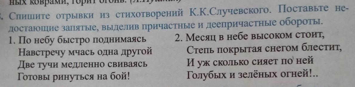 8. Спишите отрывки из стихотворений К.К.Случевского. Поставьте не- достающие запятые, выделив причастные и деепричастные обороты.