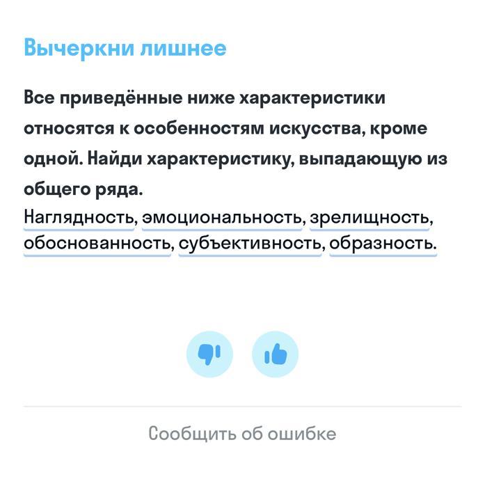 Лишнее: обоснованность. Это особенность науки, а не искусства