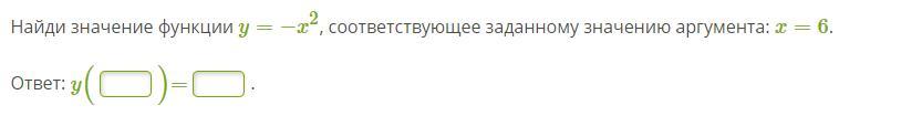 найди значение y = -x2, соответвующее заданному значению аргумента x = 6
