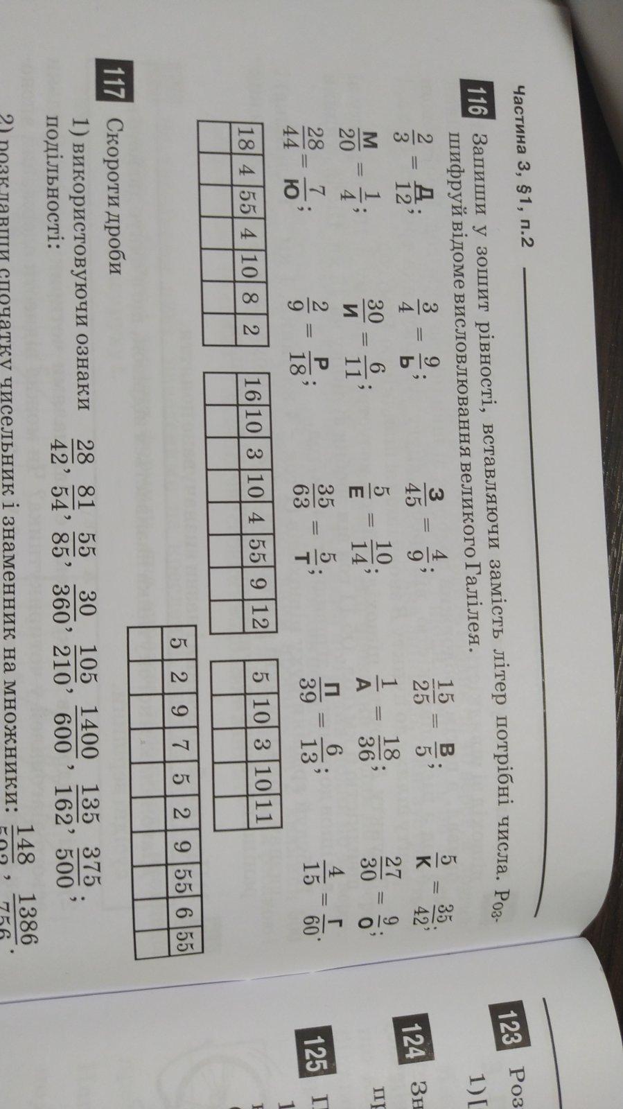 запиши у зошит рівності, вставляючи замість літер потрібні числа. Розшифруй відоме висловлювання великого Галілея