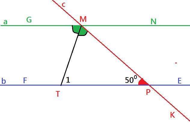<PMN=<TPM=50° - как внутренние накрест лежащие углы при параллельных прямых а и b и секущей с.