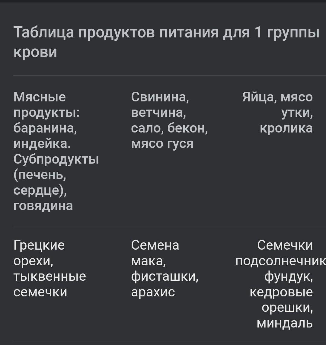 какую еду можно есть а которую нет с первой группой крови?