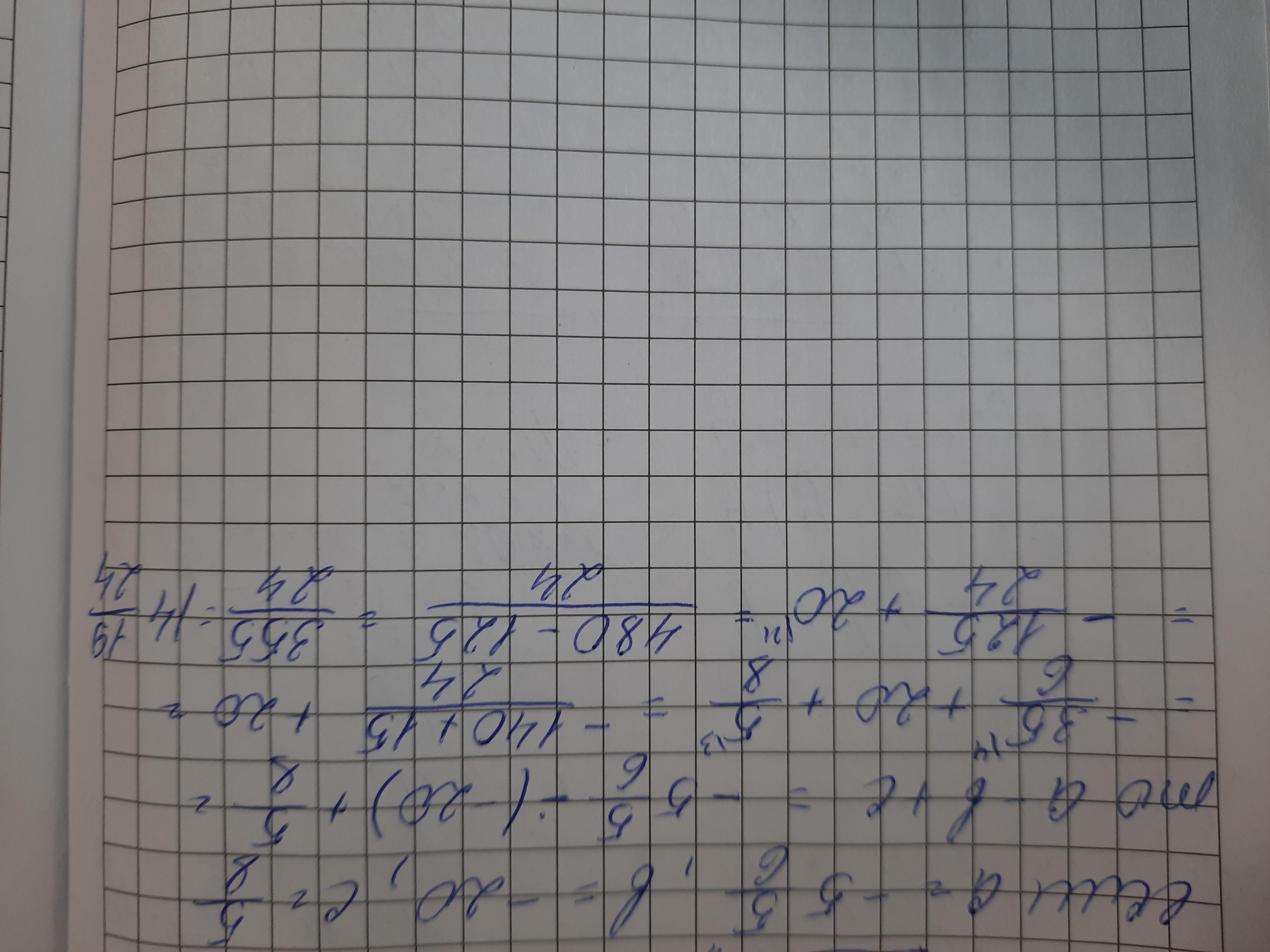 Вычислите значение выражения a – b + c, если а=- 5 5/6, b=-20 и с=5/8