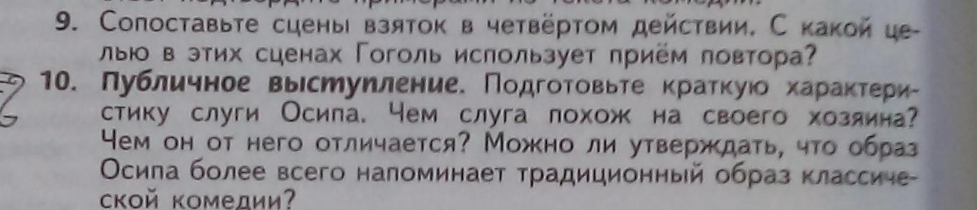 •10. Осип, слуга Хлестакова. Довольно трусливый, со стороны своего барина постоянно подвергается упрёком в любом решении. Полностью зависит от решения барина. Довольно робкий, краткий.