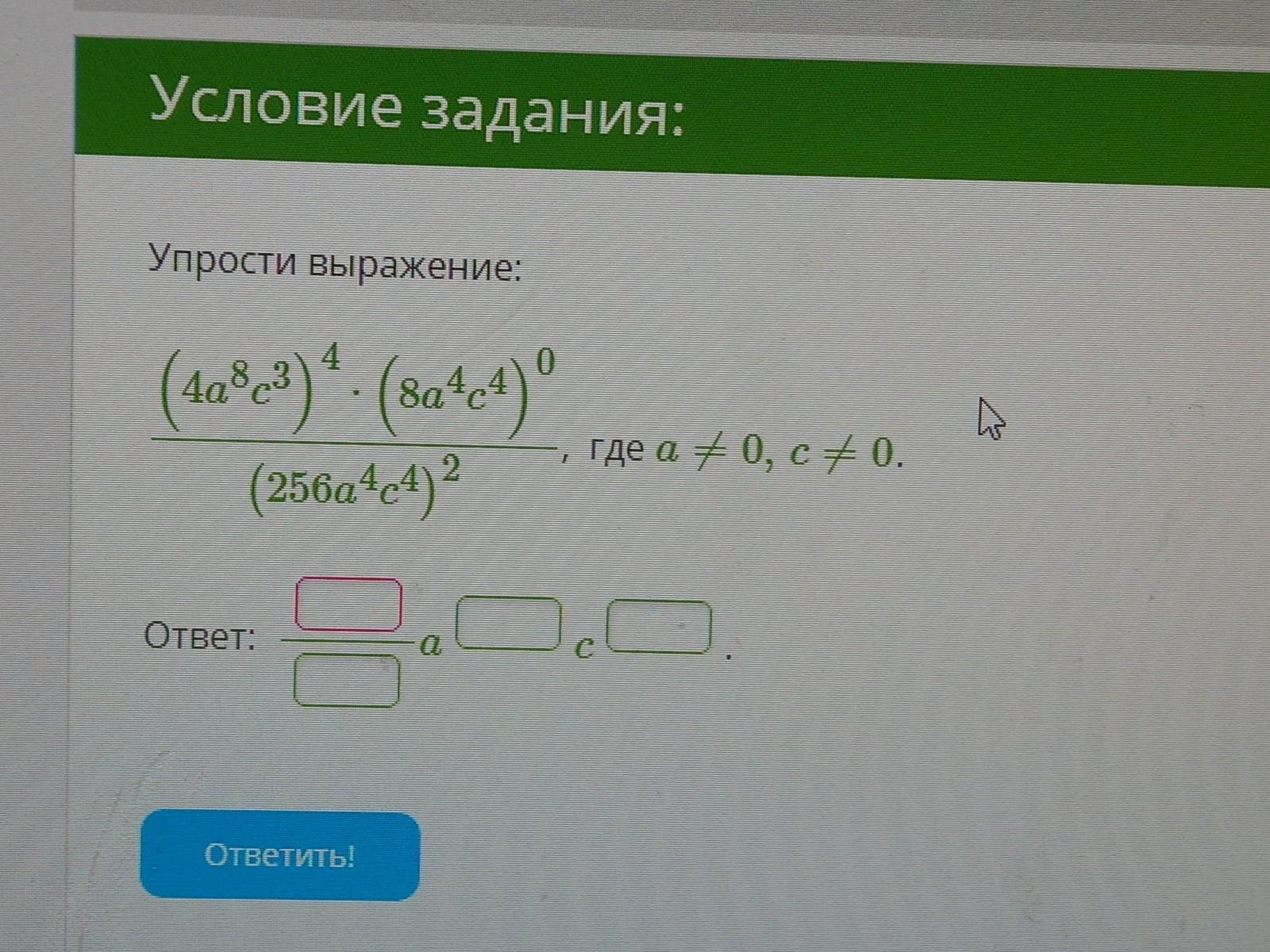 Упрости выражение: 4 о 4a ка (лачет)' (вача) 8a4e4 (256a4e4) 2 где a #0, C+0. Ответ: