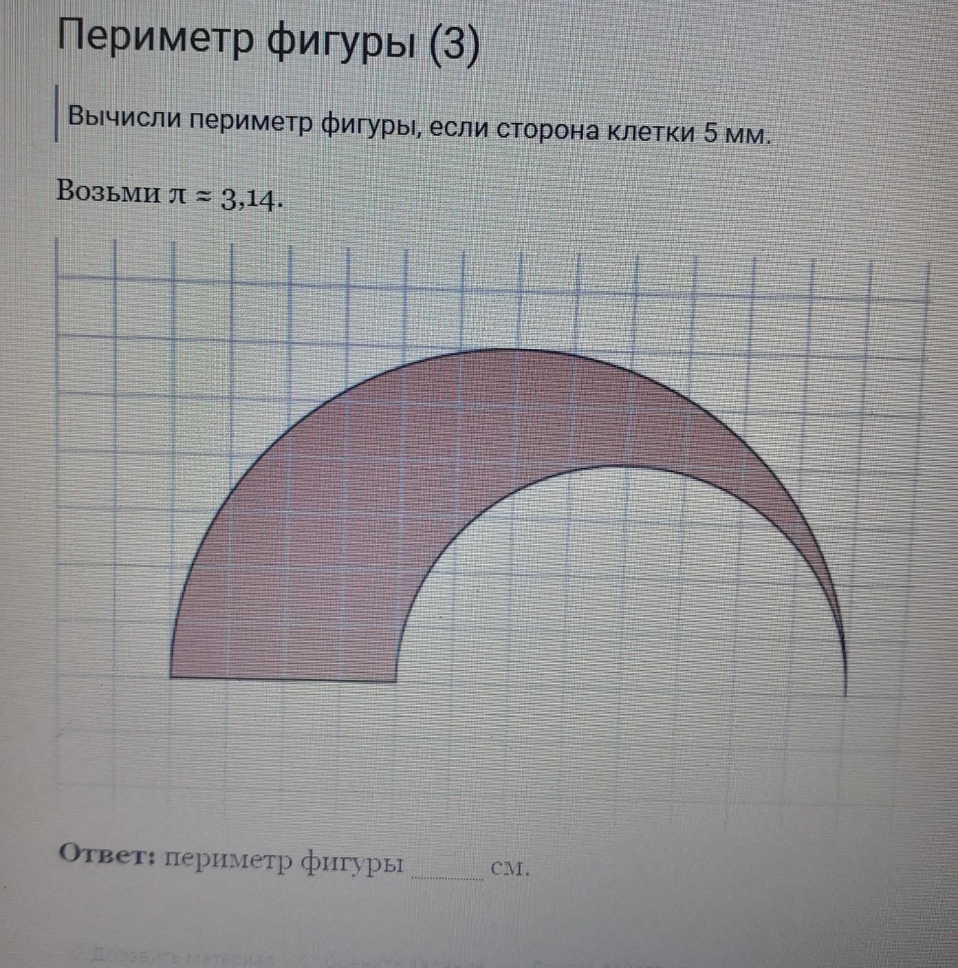 периметр фигуры=94,2мм+62,8мм+20мм=177мм или 17,7см