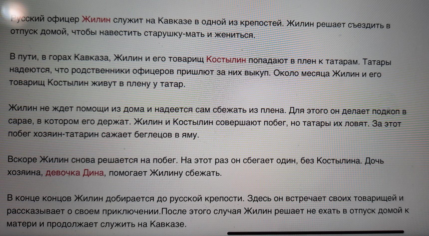 можете пересказать кавказский пленик на завтра задали пересказ, а читать долго((