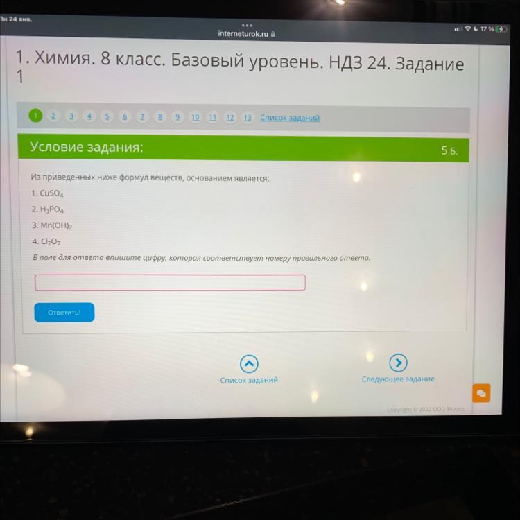 В поле для ответа впишите цифру, которая соответствует номеру правильного ответа.