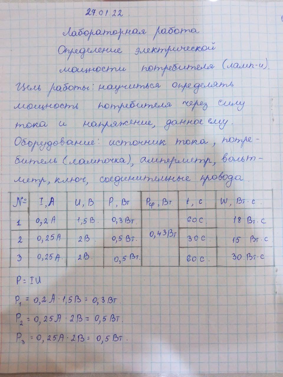 лабораторная работа на тему определение электрической мощности потребителя лампочки 8 класс