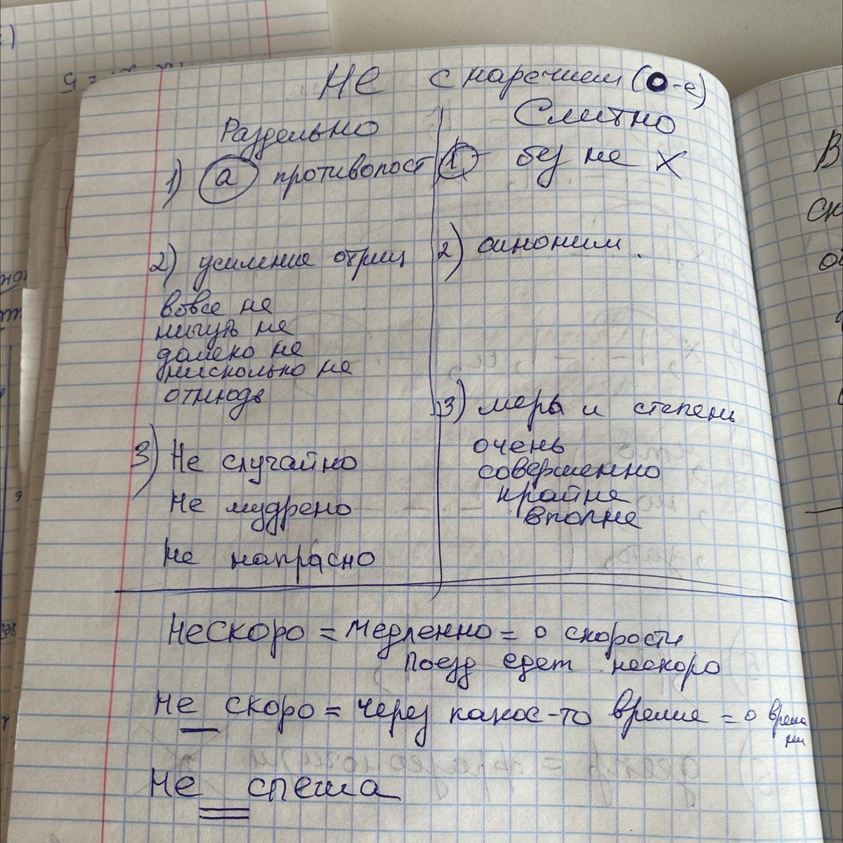2. произнёс (не)по-немецки; смотрит (не)пристально, а рассеянно