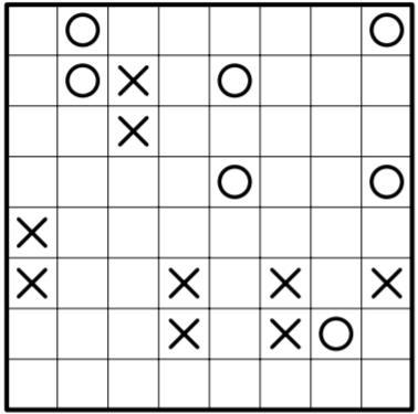Заполните свободные клетки крестиками или ноликами так, чтобы в каждой строке и в каждом столбце было по четыре крестика и четыре нолика, в каждой строке и в каждом столбце может быть не более двух крестиков или ноликов подряд. Что будет в нижней строке в угловой клетке справа - крестик или нолик? ПОМОГИТЕ ДАЮ 15 БАЛЛОВ!!!