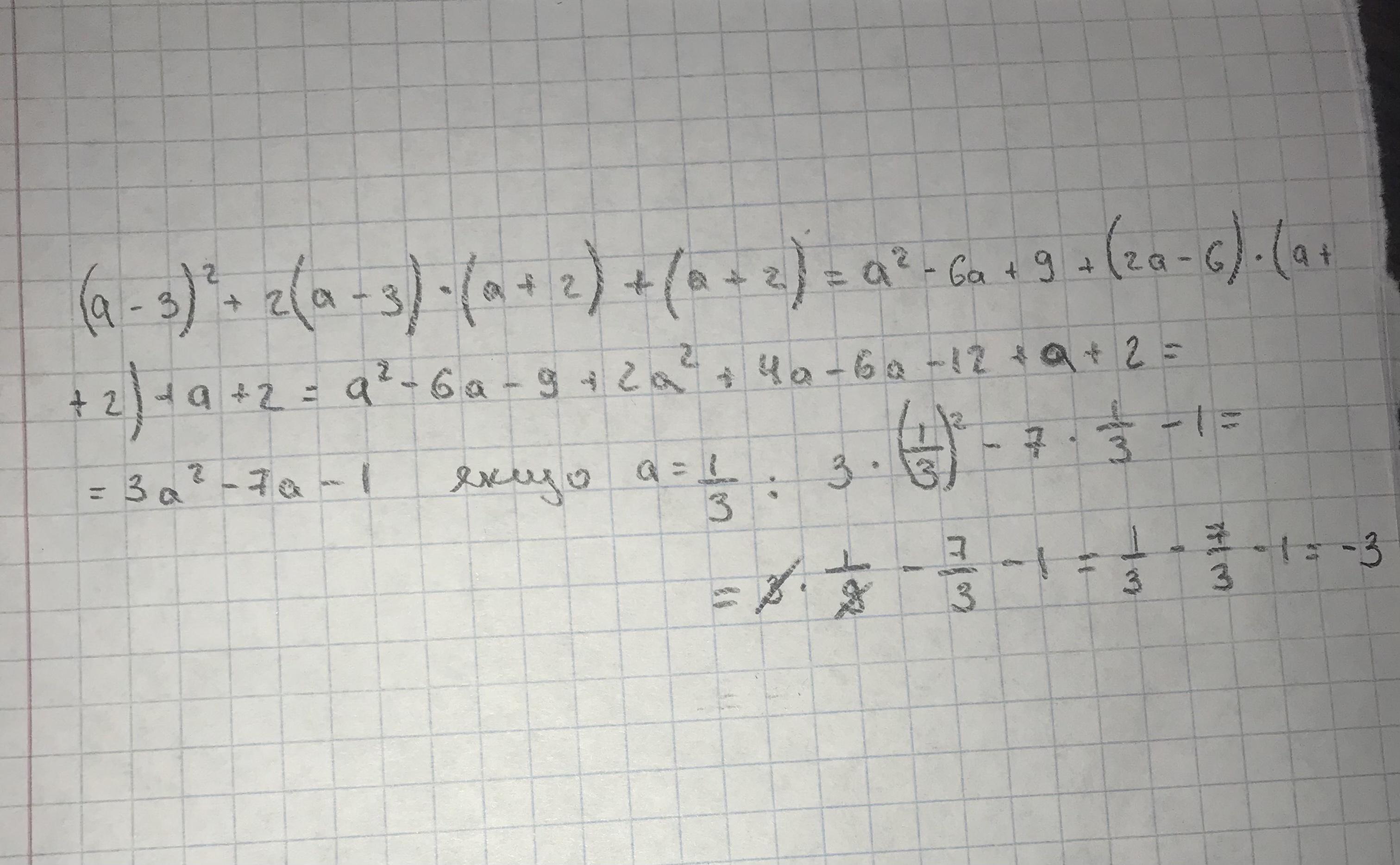 СРОЧНО!!!! СРОЧНО!!!! знайдіть значення виразу (a-3)²+2(a-3)(a+2)+(a+2); якщо a=1/3