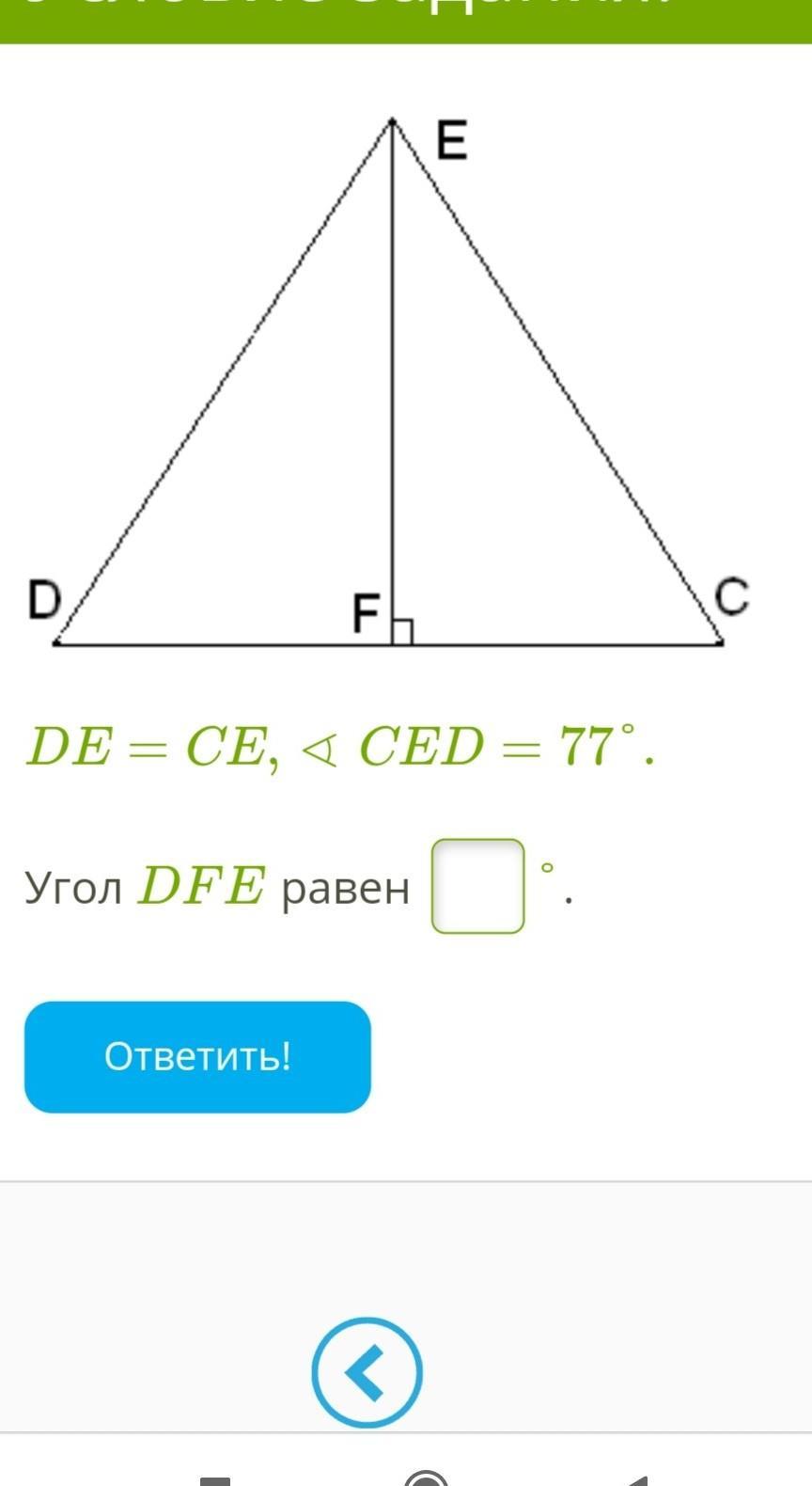 угол DFE = 90°, т.к. EF - это высота треугольника DEC