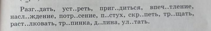 Разгадать(разгАдка),устареть(стАрый),пригодиться(гОдный),впечатление(незнаю какое проверочное слово),наслаждение(слАдкий),потрясение(потрЯс),пастух(пАс),скрипеть(скрИп),......,растолковать(тОлк),тропинка(трОпка),далина(дАль),улетать(полЁт)