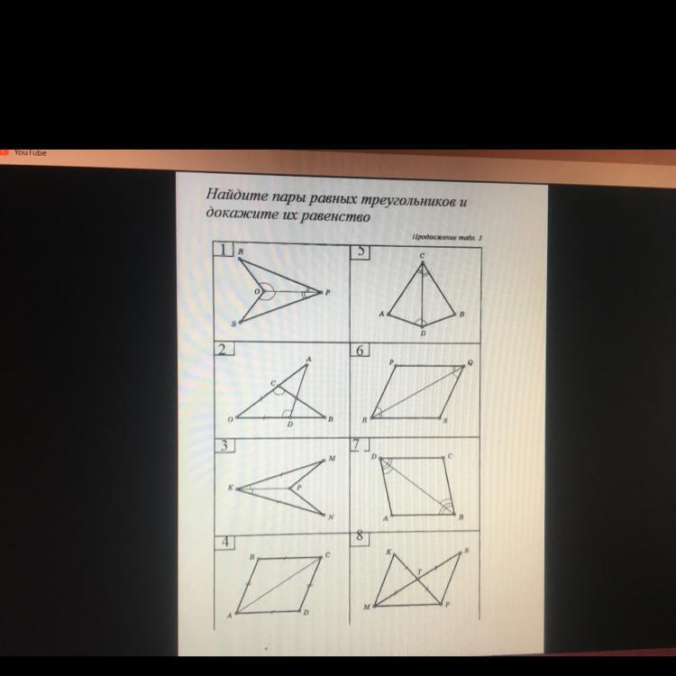 найдите пары равных треугольников и докажите их равенство (1-4)