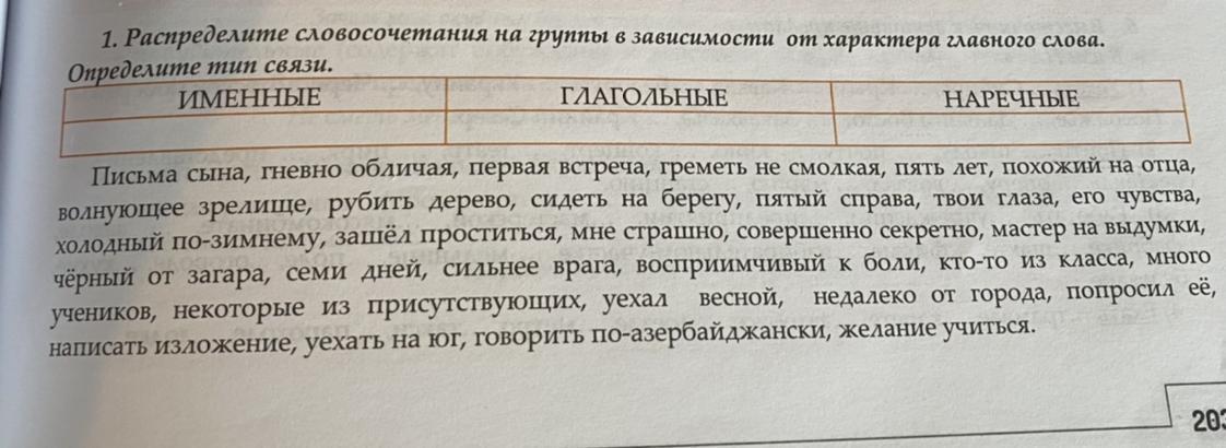 гневно обличая, пять лет, сидеть на берегу (где?), пятый справа, холодный по-зимнему, мне страшно, совершенно секретно, семи дней, первая встреча, кто-то из класса (откуда?), много учеников, уехал весной, недалеко от города, уехать на юг, говорить по-азербайджански.