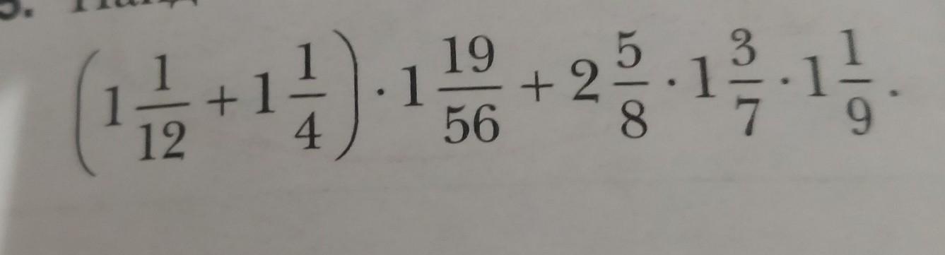 (1 1/12+1 1/4)* 1 19/56 +2 5/8 * 1 3/7* 1 1/9= 7 7/24