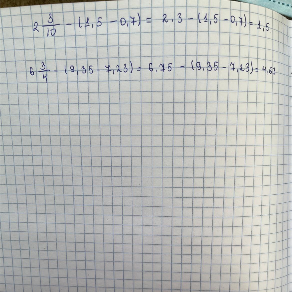 Представьте обыкновенную дробь в виде десятичной и Вычислите 2 3/10-(1,5-0,7)