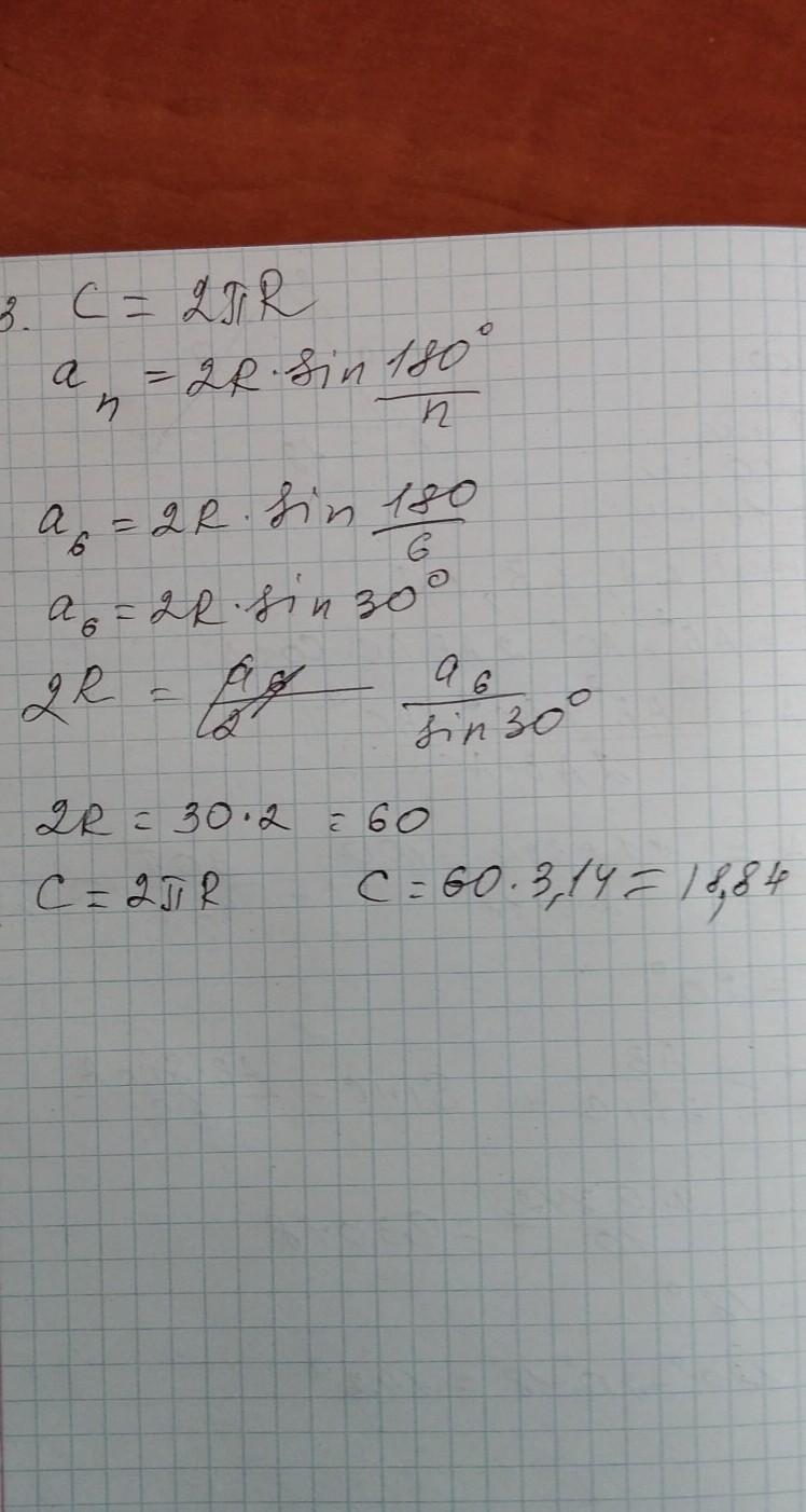 Длина описанной окружности 18,84см