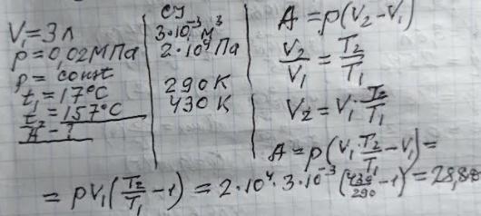 3 л газу під тиском 0,02 МПа ізобарно розширили, при цьому температура