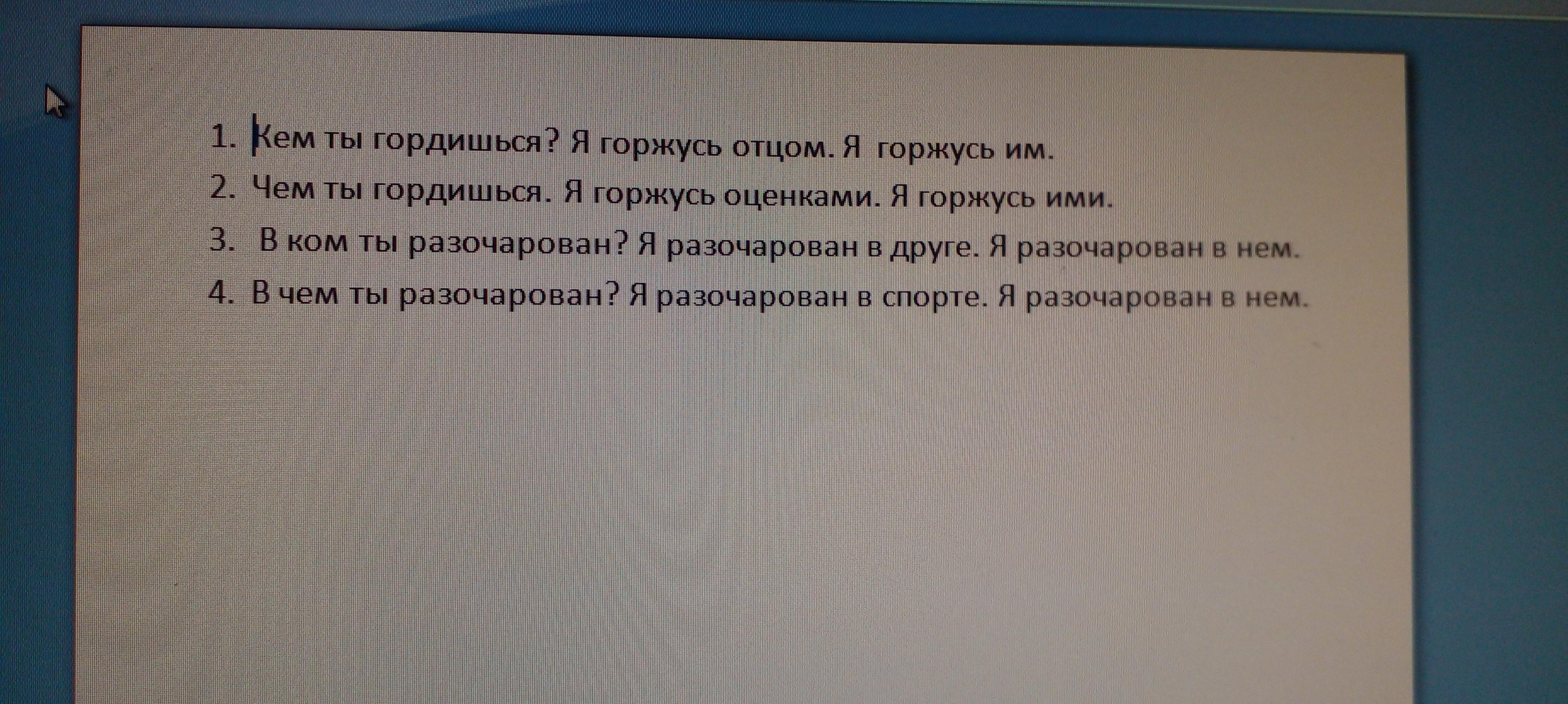 1)Auf wen bist du stolz? Ich bin stolz auf meinen Vater. Ich bin stolz auf ihn.