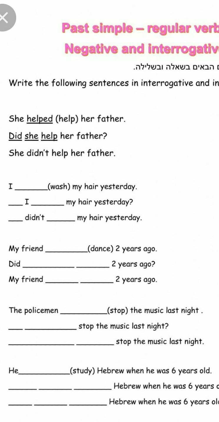Past simple-reguiaz vezbs Negative and interrogative помогитеее срочнооооооооо дам 50баллов