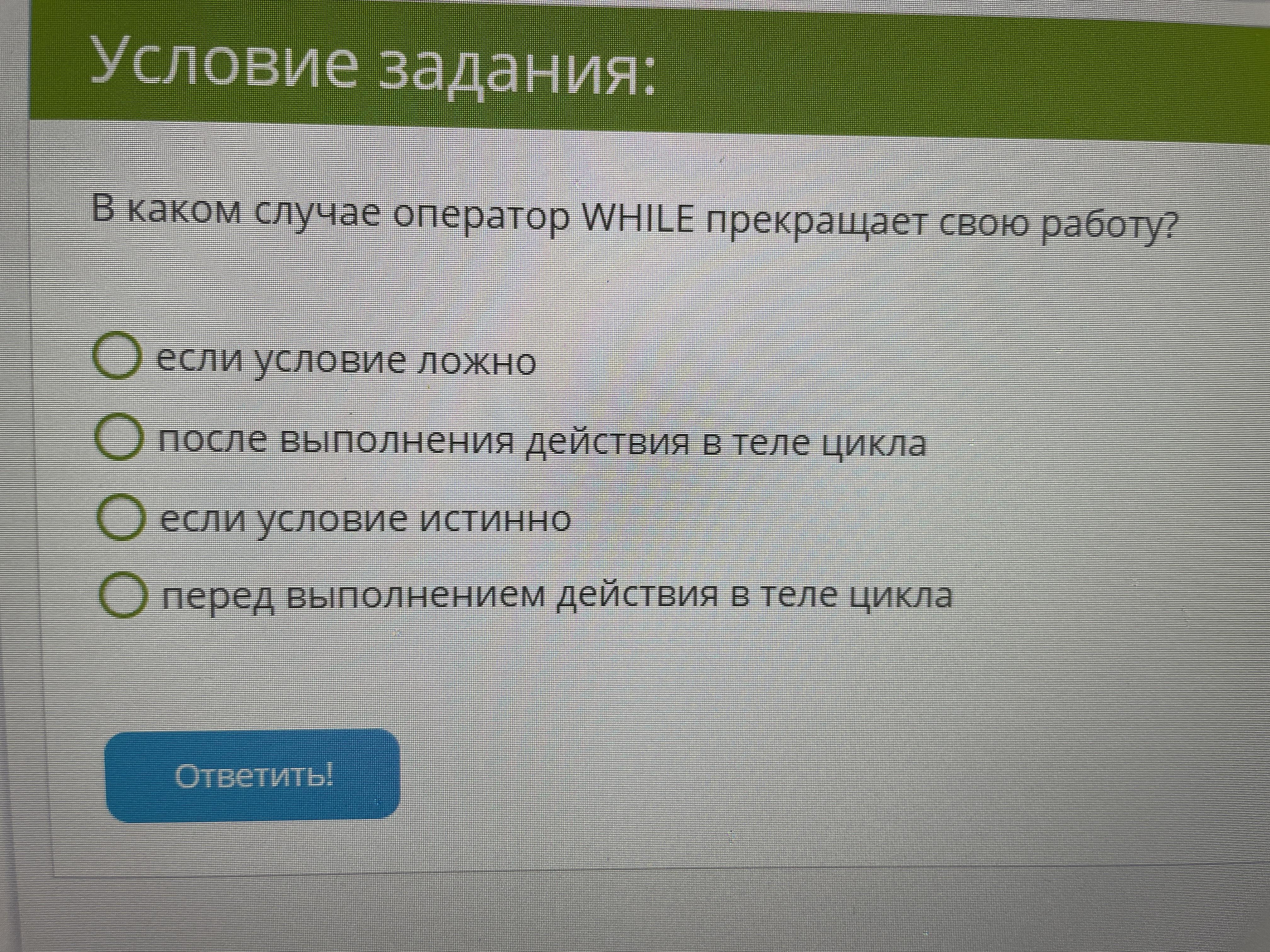 While прекращает свою работу, если условие ложно