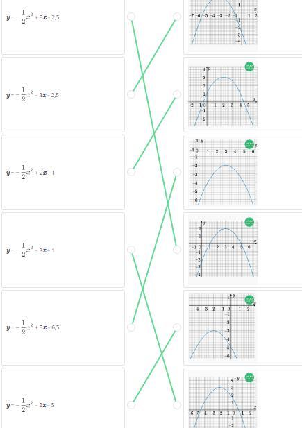 Сопоставь уравнение квадратичной функции с ее графиком (не поместился один график и одна функция)