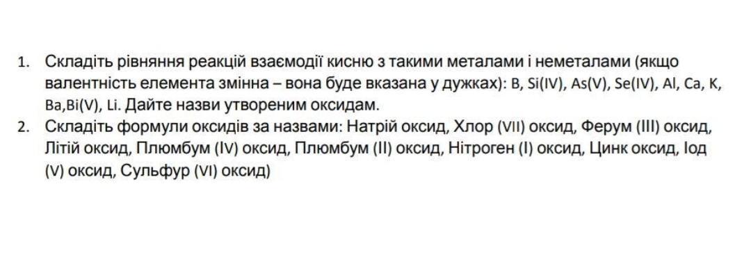 Пояснення:2)NAO,CL2O7,FE2O3,LI2O,PBO2,NO,ZNO,I2O5,SO3
