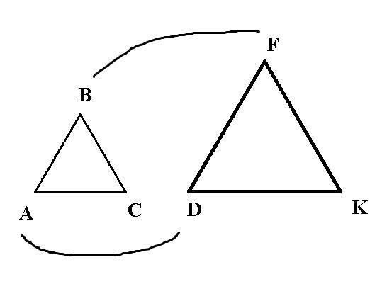 Дано ΔАВС ⁓ ΔDFK. Чим потрібно заповнити пропуск ∠В = ∠…?