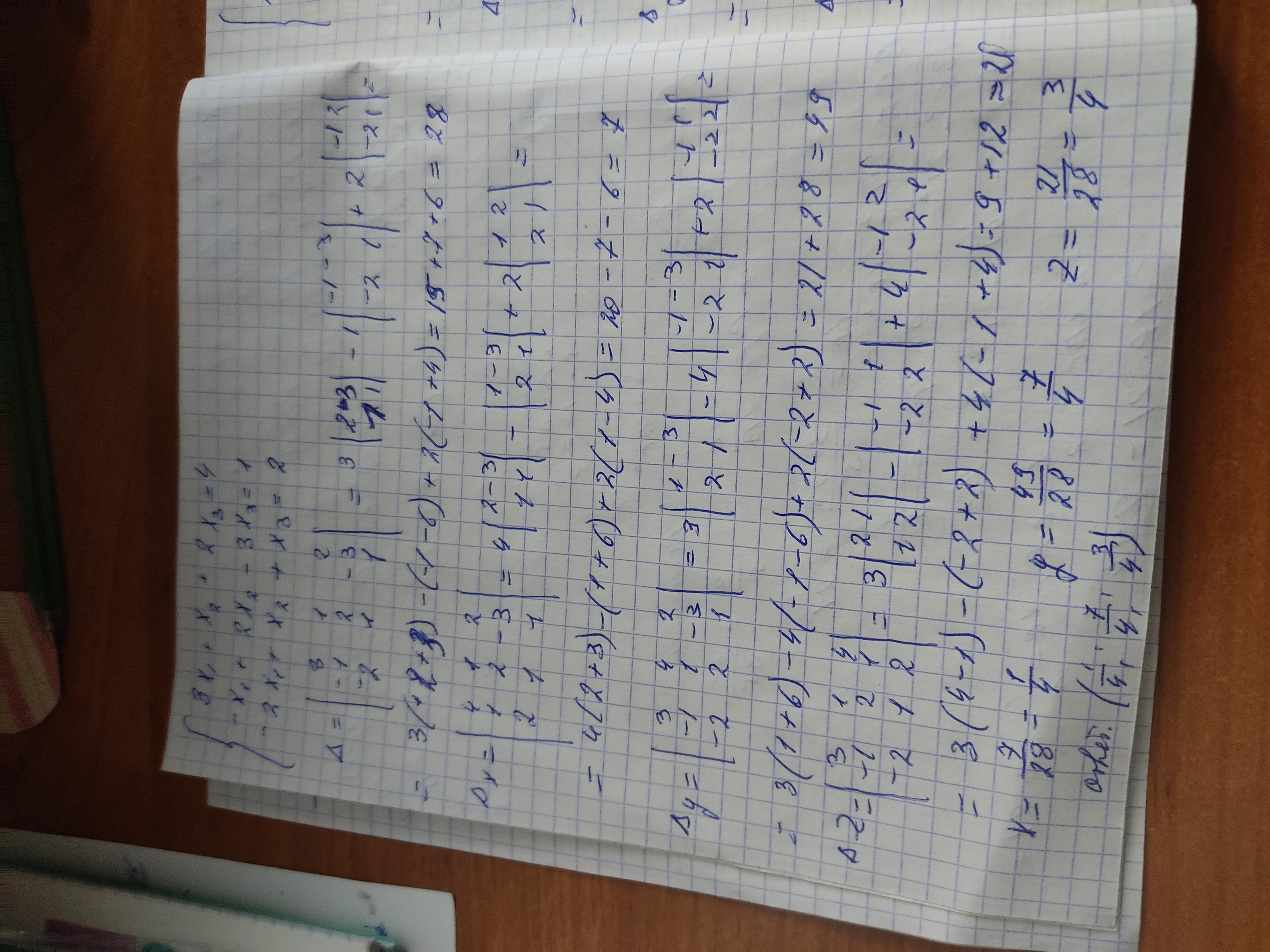 1 . Решить систему линейных уравнений методом Крамера:Распишите подробно всё пожалуйста