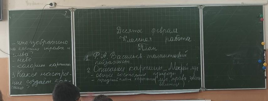 Надо описать картину по плану ( план есть на доске по нему и описывать!) Картина Ф.Васильева "Мокрый луг"