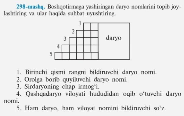 5. Ham daryo, ham viloyat nomini bildiruvchi soʻz.