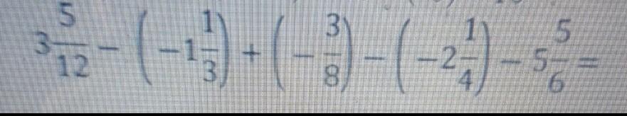 3. 5/12 + 1. 1/3 - 3/8 + 2. 1/4 - 5. 5/6 =