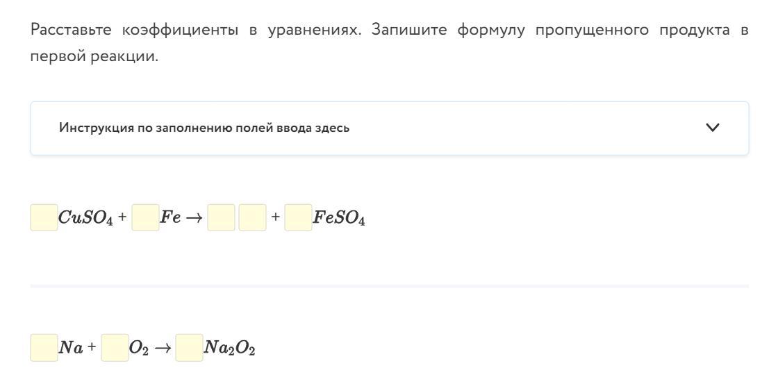 Расставьте коэффициенты в уравнениях. Запишите формулу пропущенного продукта в первой реакции.