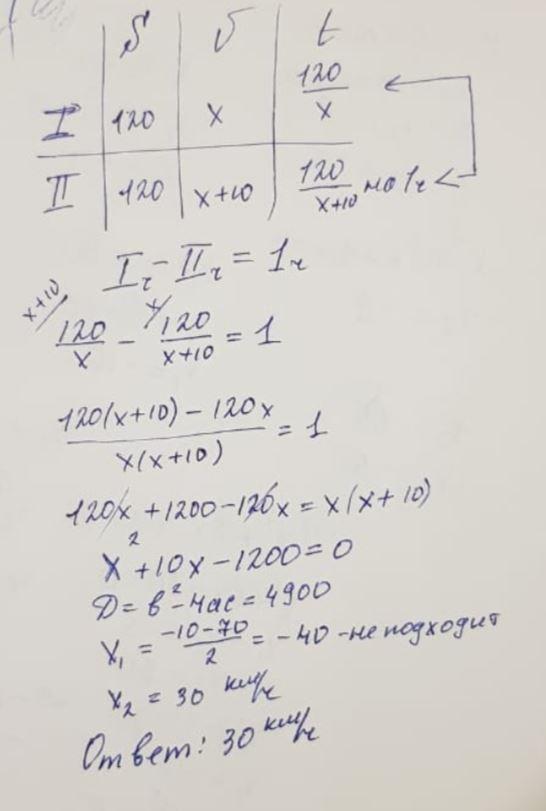 1. Расстояние между городами 120 км поезд проходит за определенное время. Если же он увеличит скорость на 10 км/ч, то потратит на весь путь на 1ч меньше. Какова первоначальная скорость поезда?