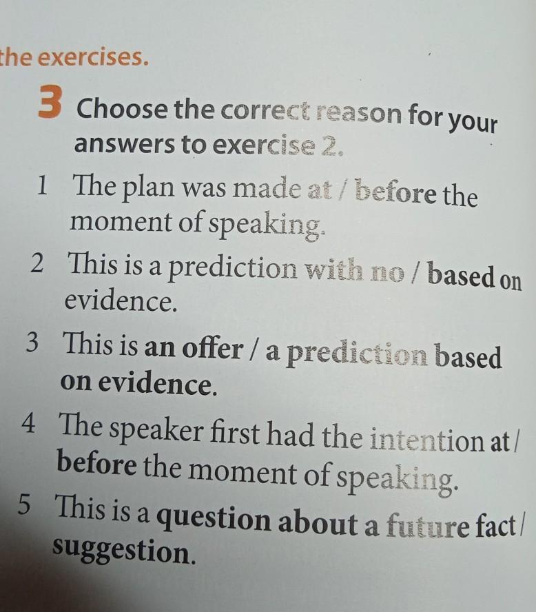 3 Choose the correct reason for your answers to exercise 2. прошу помогите