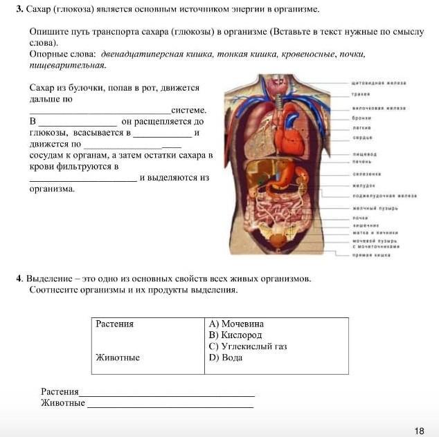 Ответ:Сахар из булочки попав в рот движется дальше по пищеварительной системе. В двенадцатиперстной кишке он расщепляется до глюкозы,всасывается в тонкую кишку и движется по кровеносным сосудам к органам,а затем остатки сахара в крови фильтруются в почках и выделяются из организма. а 4 растения: кислород, углекислый газ