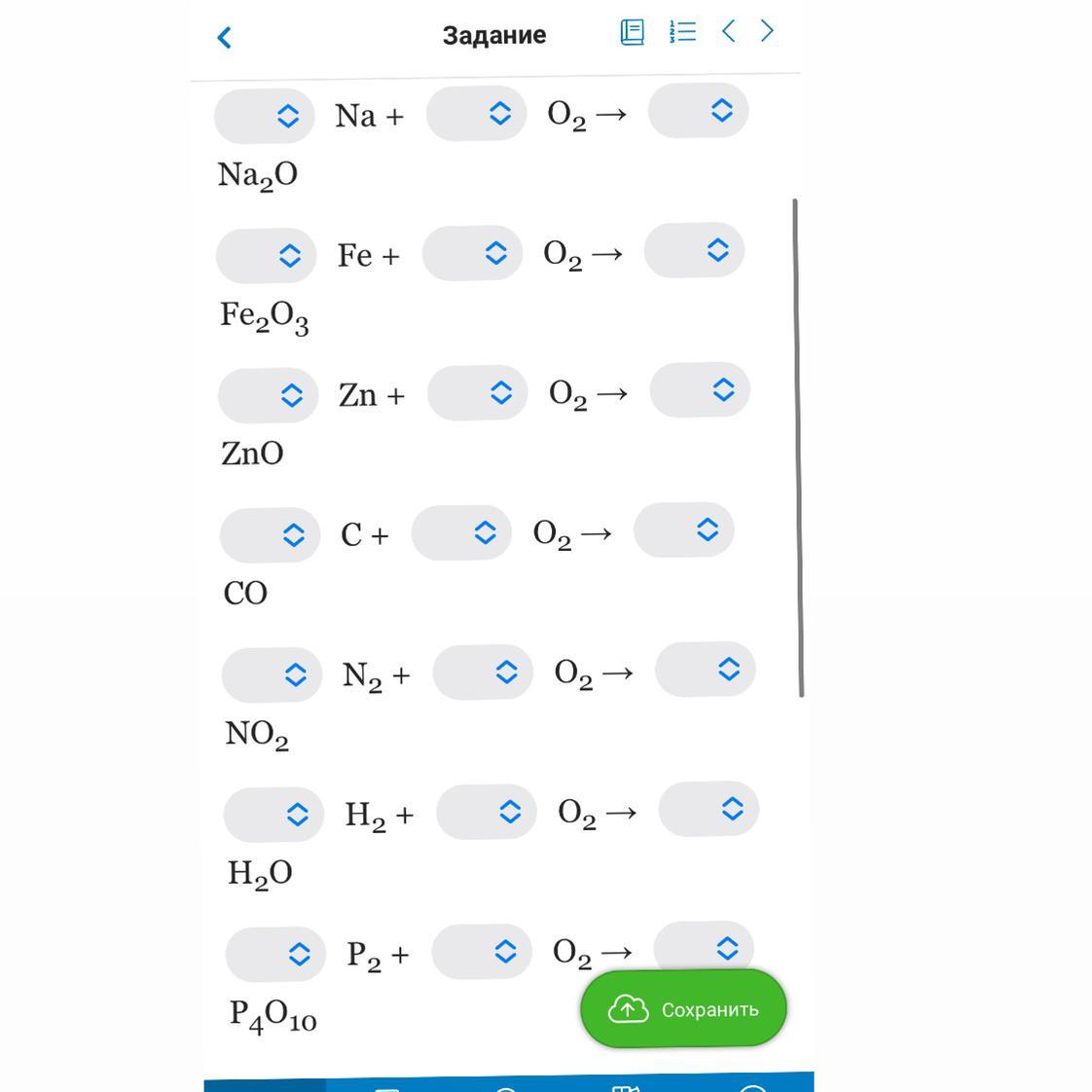 Расставь коэффициенты в следующих уравнениях химических реакций.